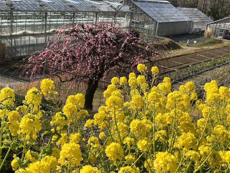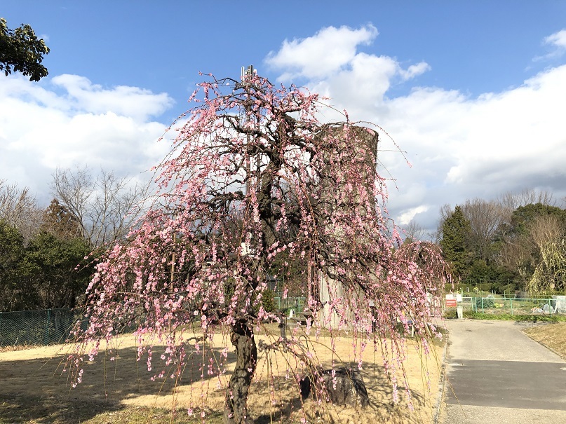 名古屋市農業センターデラファームの枝垂梅が見ごろに。