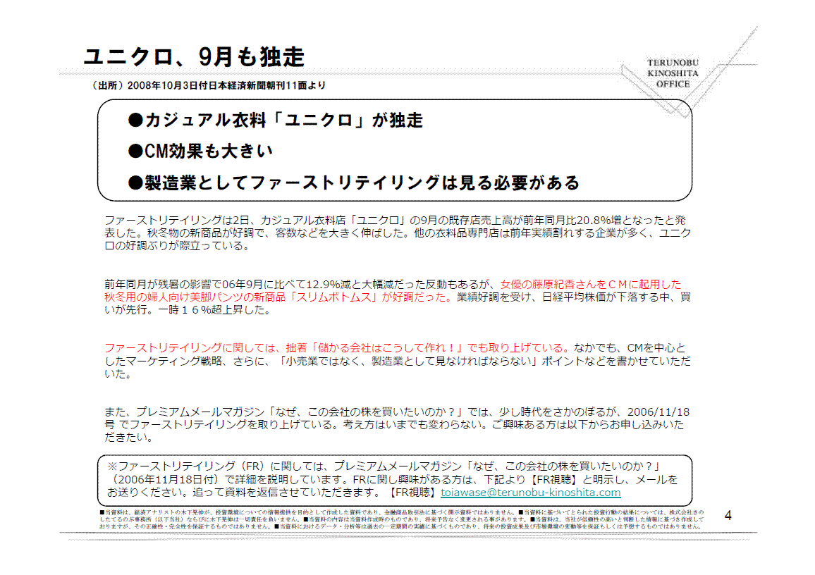 では、少し時代をさかのぼるが、2006/11/18号 でファーストリテイリングを