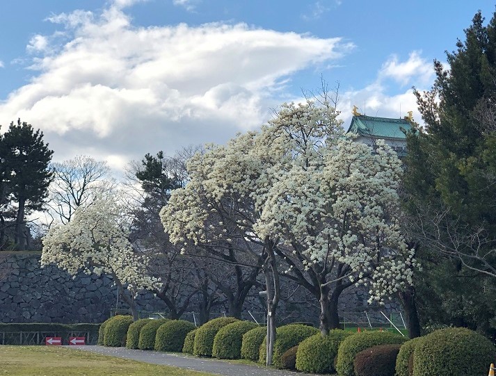 白モクレンの大木二つと、つばき展。
