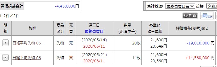 現在の建玉は