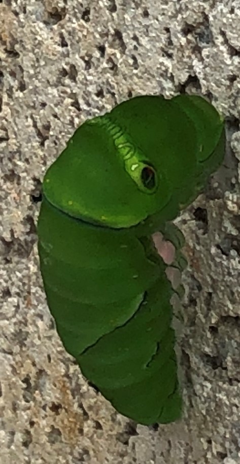 隣の家から逃げてきて、ぶら下がってた幼虫がさなぎに。
