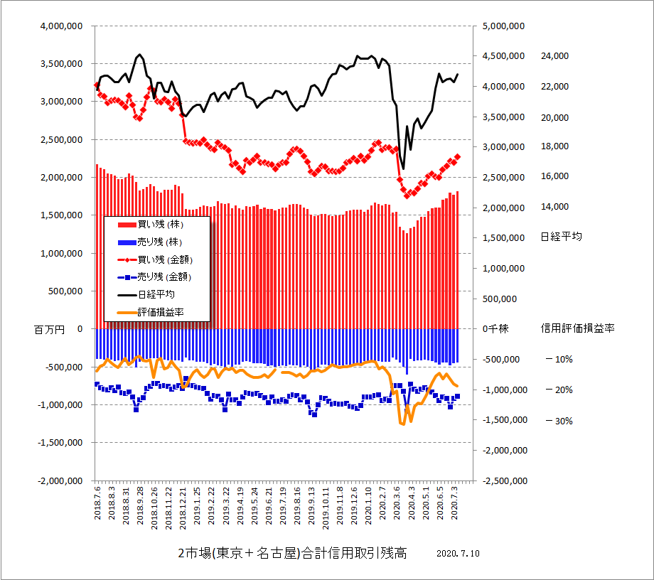 信用取引残高のグラフ(R2.7.16現在)
