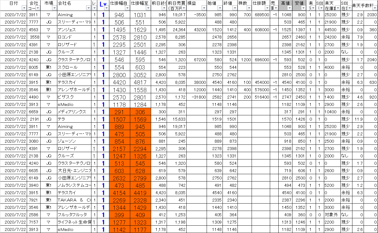 2020/7/22(水曜日)今日の寄り引けシステムトレードの損益を公開します