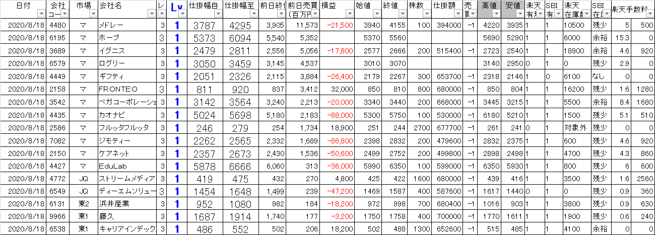 2020/8/18(火曜日)今日の寄り引けシステムトレードの損益を公開します