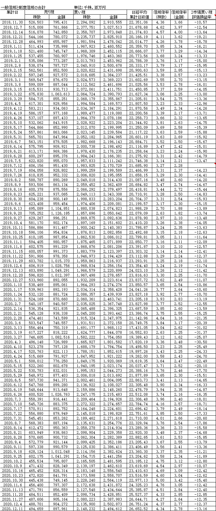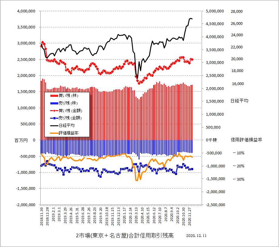 で、12/11現在の信用取引残高のグラフです。買いも売りも大して変化なし。