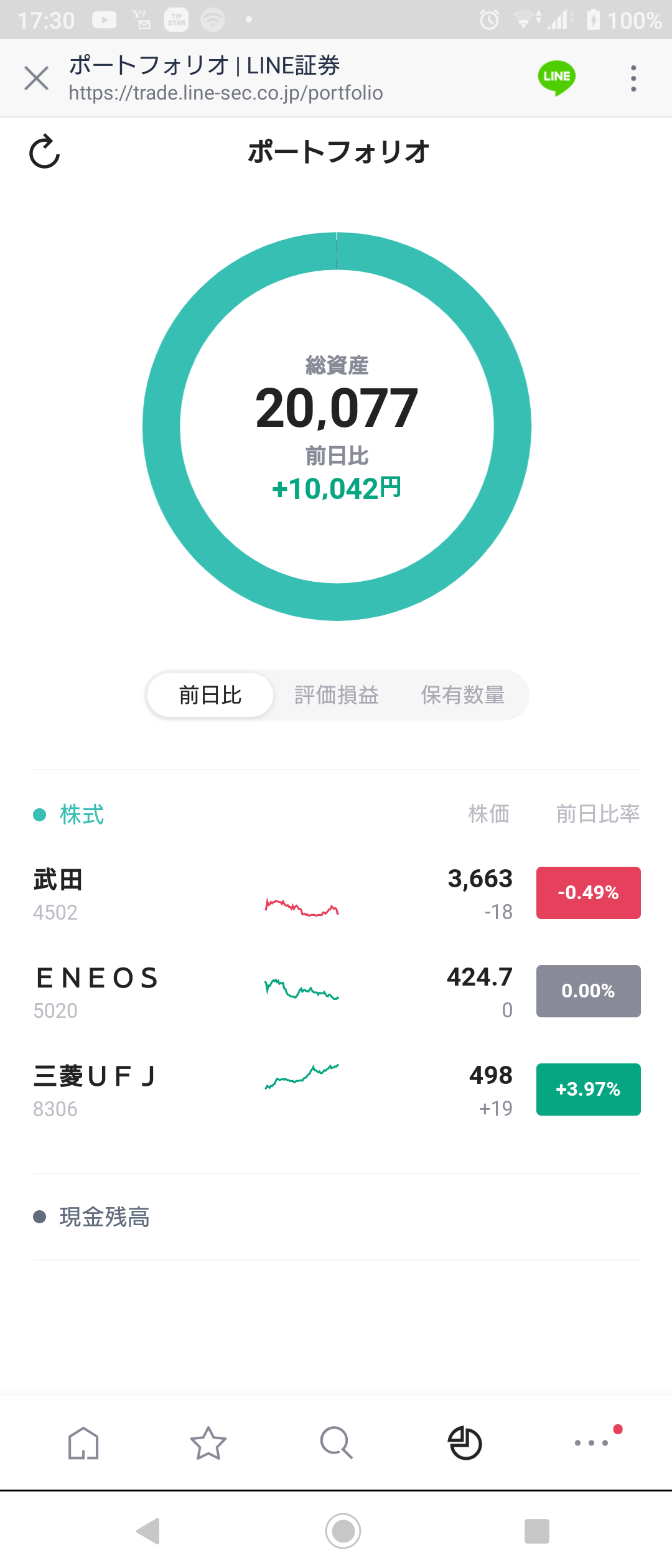 パナソニックとソニーを買いたかったのですが、どうせ買うなら本業のSBI証券で500株くらい買ったほうが良いと判断し、LINE証券購入を自重しました。