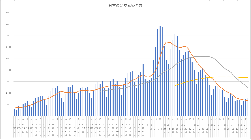 下げ角度の大きかった新規感染の28日移動平均が直近の値に近くなるのはもうちょっと先だが、それで本格的なヨコヨコに?