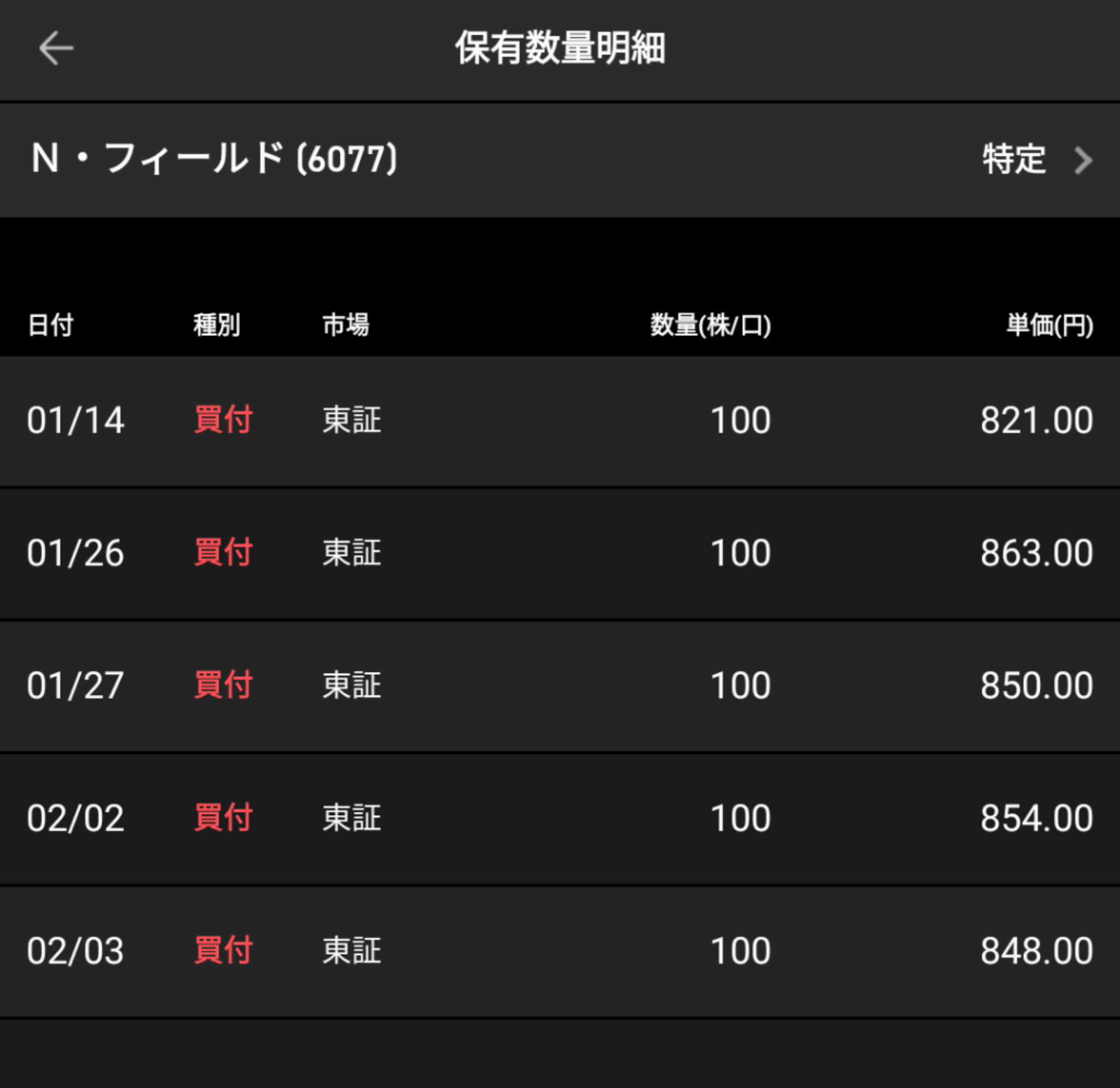 私はNフィールドを知ったのが一ヶ月前で5回の購入で平均850で500持ってました。
