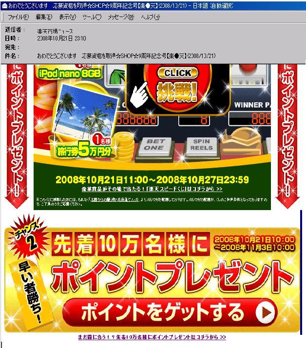 おめでとうございます!応募資格を取得☆SHOP☆9周年記念号【楽●天】(2008/10/21)