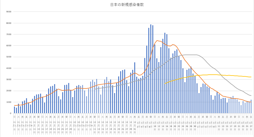 もう日が替わっている(28日)ので、27日分については、東京データと日本データの両方書けるけど、、もう眠くて倒れそうです。