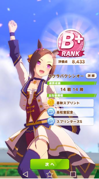すると『うまぴょい♪うまぴょい♬』と楽曲が流れるので感動もひとしおでした。夜間/週末このゲームばかりやっていて、普段やるSplatoon2(switch)は全くやりませんでした。ウデマエ下がるわ~。