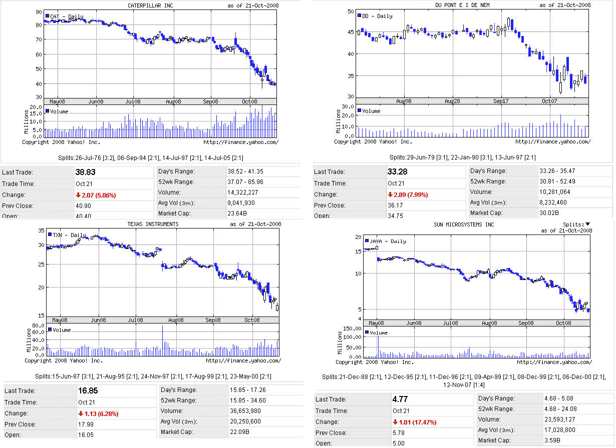 業種別では全般的に売られたのですが、やはり景気敏感株が駄目だなぁと。鉄鋼、非鉄、商社、機械、海運・・・。原油価格が下落しましたし、キャタピラーも決算発表後に売られましたし、新興国もおかしくなってきているところが続々と出てきていますし。バルチック指数も下げ止まりません。