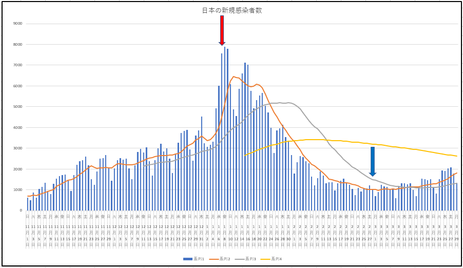 月曜は月曜なりのデータ。トレンドみたら明確に上昇ですねん。もっと強く断言して(とくに緊急事態とかじゃなくてもよいので)緩みがちな人々に対して注意喚起を続けるべきでしょうね。
