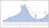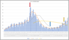 東京都の今日までの新規と入院患者数の推移。魔の木曜なのでそれなりだったが、トレンドはまだ持ちこたえている。今週末が山か?