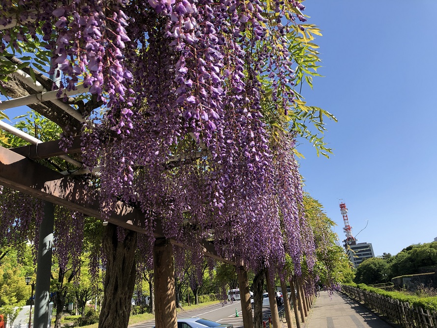 名城公園の周りに藤の棚半分回ってる。