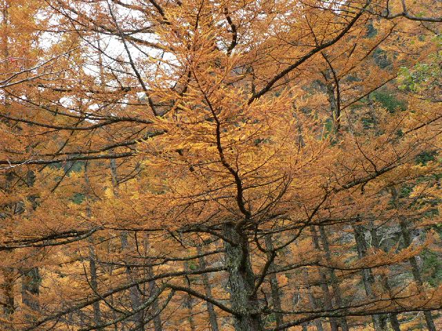 上高地のカラマツも散り始めています、今が最高紅葉日だった気がします。