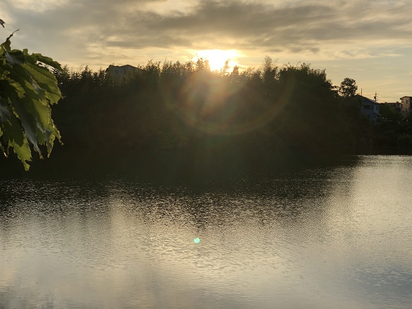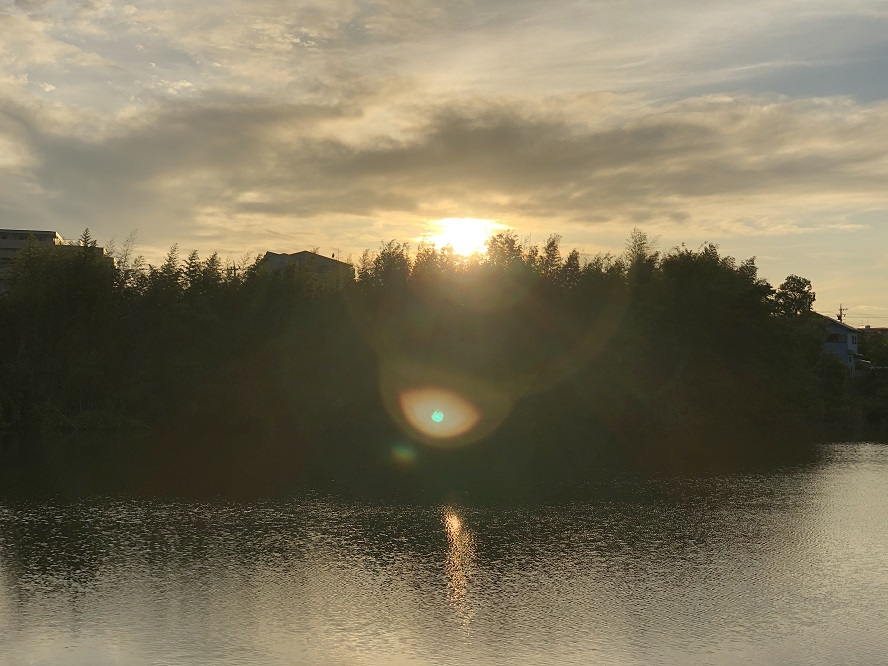 久しぶりに6時に夕陽を見た。この後、アピタの上を飛行機が飛んで行った。