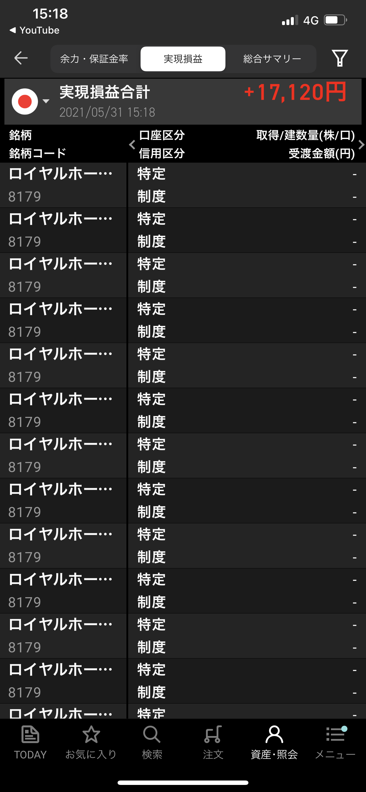空売り、5/31の実現損益は+17120円