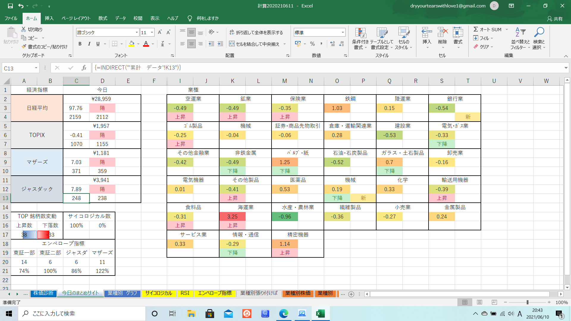 TOPIXだけがマイナスになっておりますが