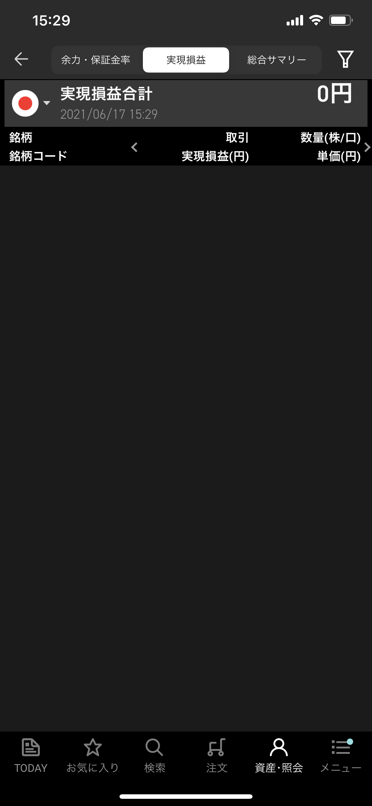 空売り、6/17の実現損益は+0円