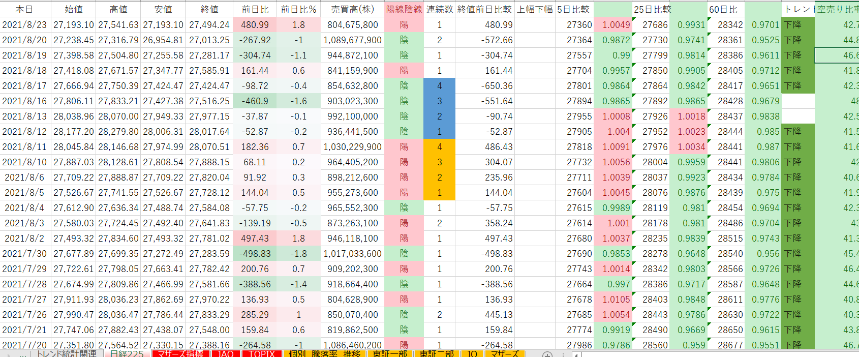 凄い下降トレンドが多くなってします。
