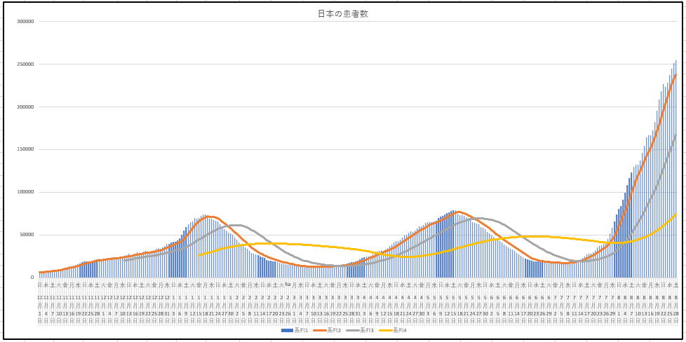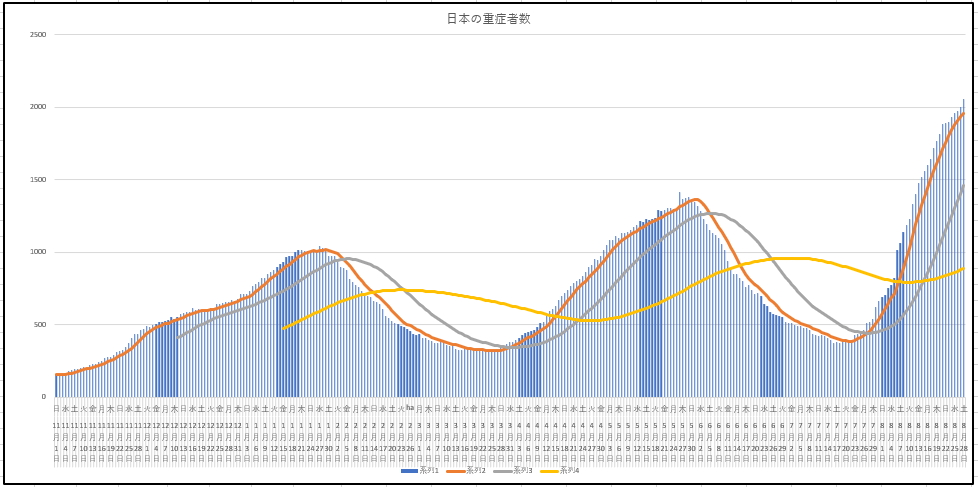 数日ぶりに日本の新規感染者数、現存患者数、重症者数の