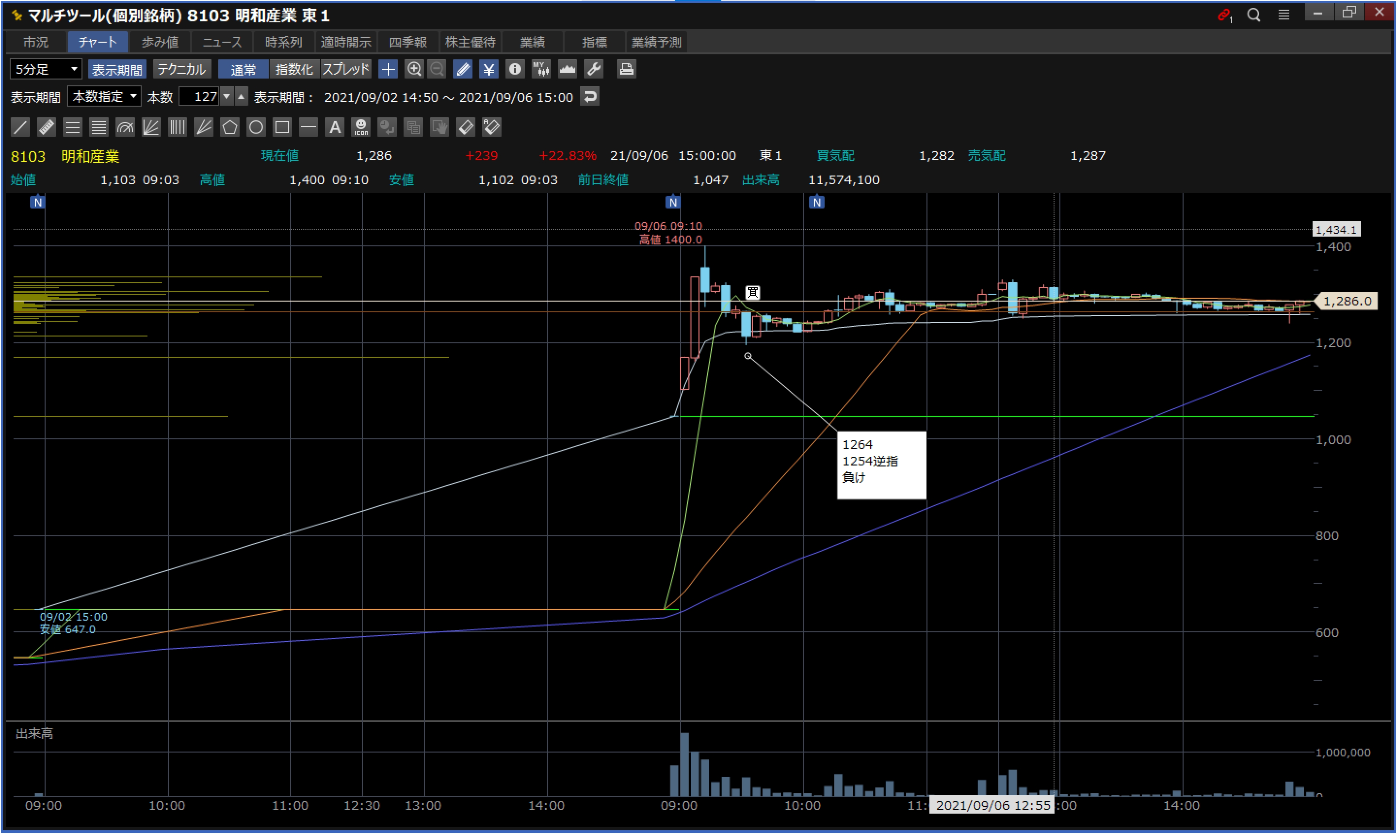 当日:解放直後のVWAP上下髭乗り