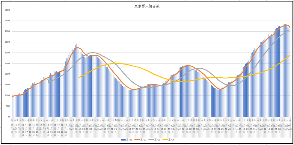 入院者数や重症者数はまだ以前の山よりかなり上にあります。