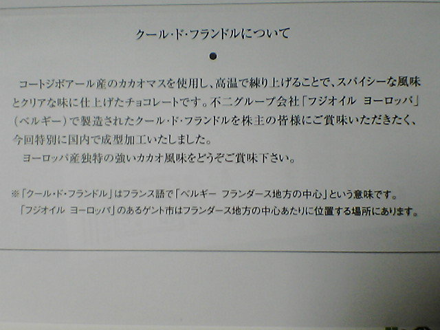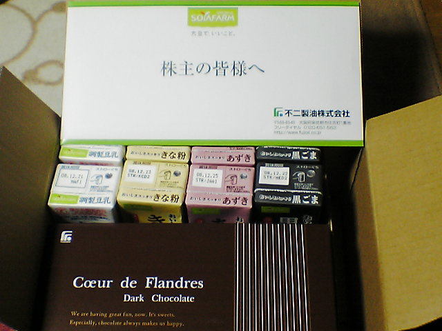 2008年不二製油 株主優待 特製チョコレートと豆乳セット