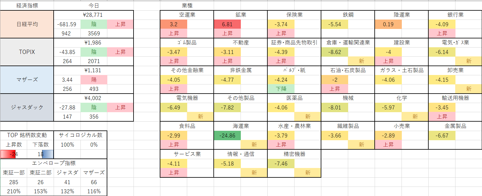 上昇トレンド解消業種は10業種に及びました(;^ω^)!!すさまじい一日です。
