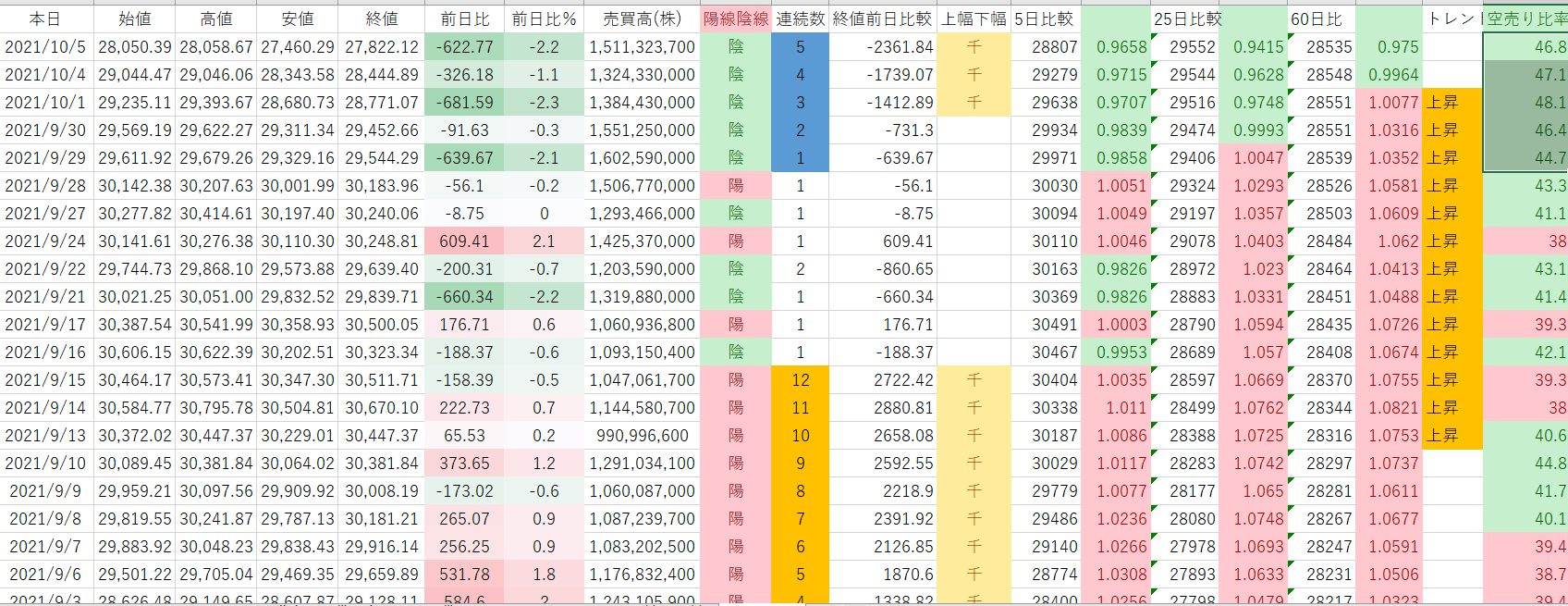 ここ5営業日の空売り比率は