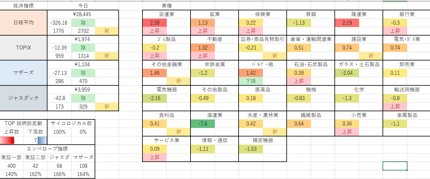 上昇トレンドは4業種。。。。。先週、先々週までは20以上の業種で上昇トレンドでした。