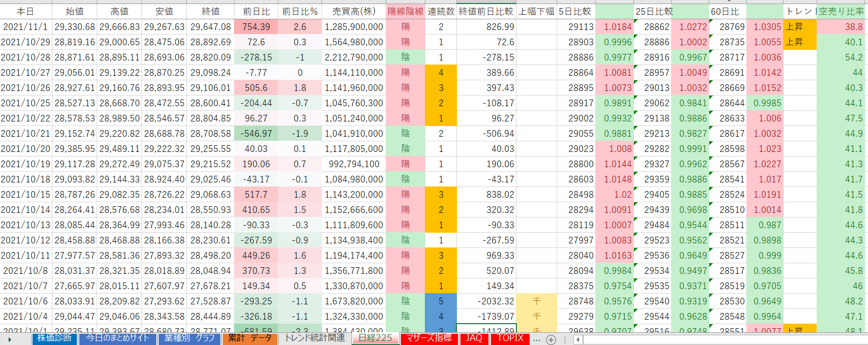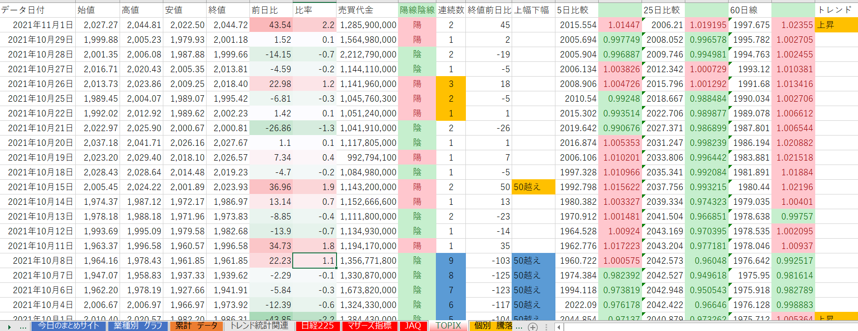 マザーズの上昇トレンド平均継続日数 24日 となります。