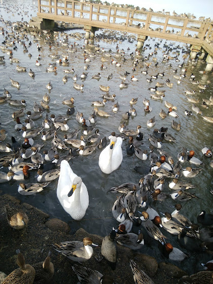 餌を白鳥に投げてやっても、その100倍の数の鴨がやって来て、ぜんぜん白鳥は食えないのよw