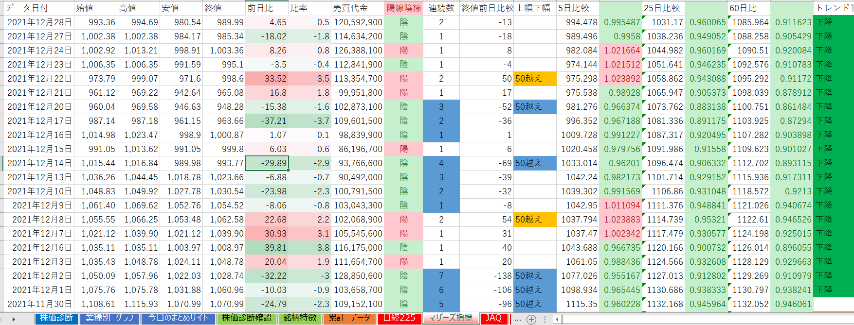 12月はここまで、日別東証全体の値上がり銘柄率平均 51%(前日比₊1%)