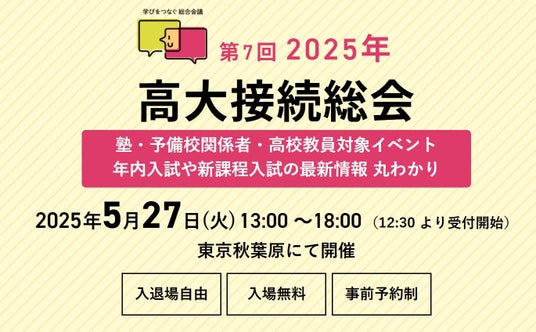 SAK University(東京都 品川区)は、2025年5月27日(火)に開催される進学イベント「高大接続総会総会」(主催:アロー教育研究所、会場:ベルサール秋葉原)に出展いたします。