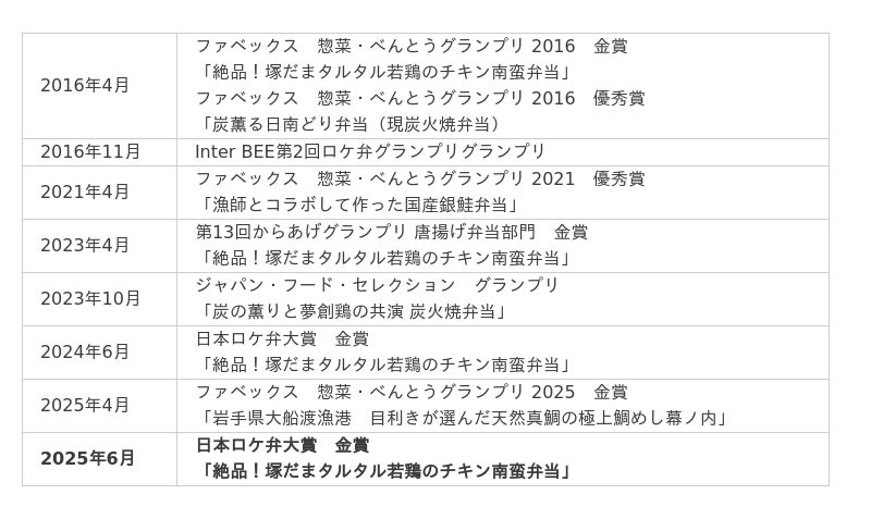 ロケ弁愛用者による業界内に影響を与えた弁当として2年連続の金賞受賞