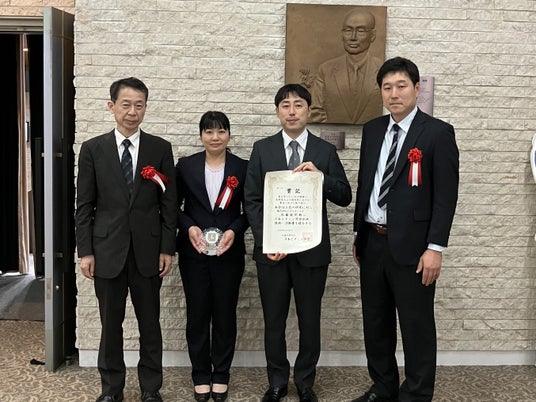 2025年度日本ビタミン学会「企画・技術・活動賞」当社受賞メンバー 左から 佐藤 俊郎、河原 瑠美、鈴木 啓章、宮田 貴史