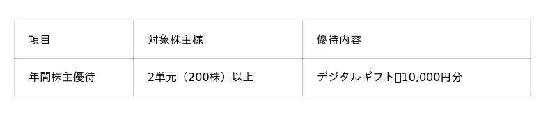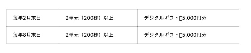 対象となる株主様に対して、以下のとおりデジタルギフト(R)を贈呈いたします。