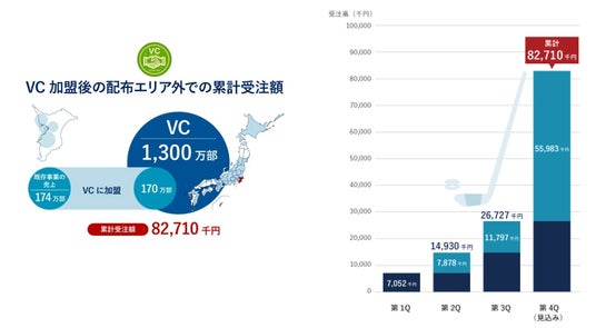 中広が展開するVC(ボランタリー・チェーン)は、全国のフリーペーパー事業主で構成される組織です。VC加盟や媒体ネットワークとの連携により、年間 7,000 社の取引先に対して、全国約1,300 万部/月への広告提案が可能になりました。その結果、『ちいき新聞』配布エリア外での累計受注額は、2024年9月から2025年8月までの累計で82,710千円となりました。今後も、全国規模での広告展開を加速し、新たな市場の開拓を進めてまいります。