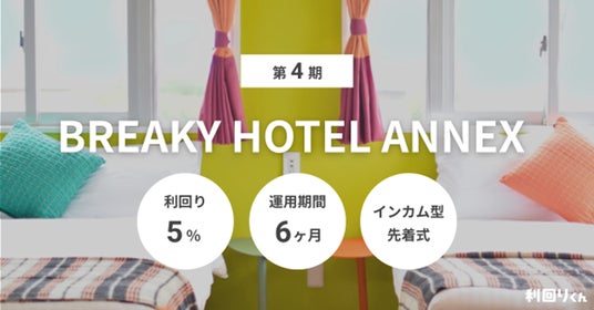 式会社シーラホールディングス(本社:東京都渋谷区、代表取締役会長:杉本 宏之、証券コード:8887、以下「当社」)のグループ会社である株式会社シーラ(本社:東京都渋谷区、代表取締役:湯藤 善行、以下「シーラ」)は、当社が運営する不動産クラウドファンディングサービス「利回りくん」において、新ファンド「第4期 BREAKY HOTEL ANNEX」を11月26日(水)より募集開始いたしますのでお知らせいたします。募集金額は1億7,782万円、想定利回りは5%を予定しています。