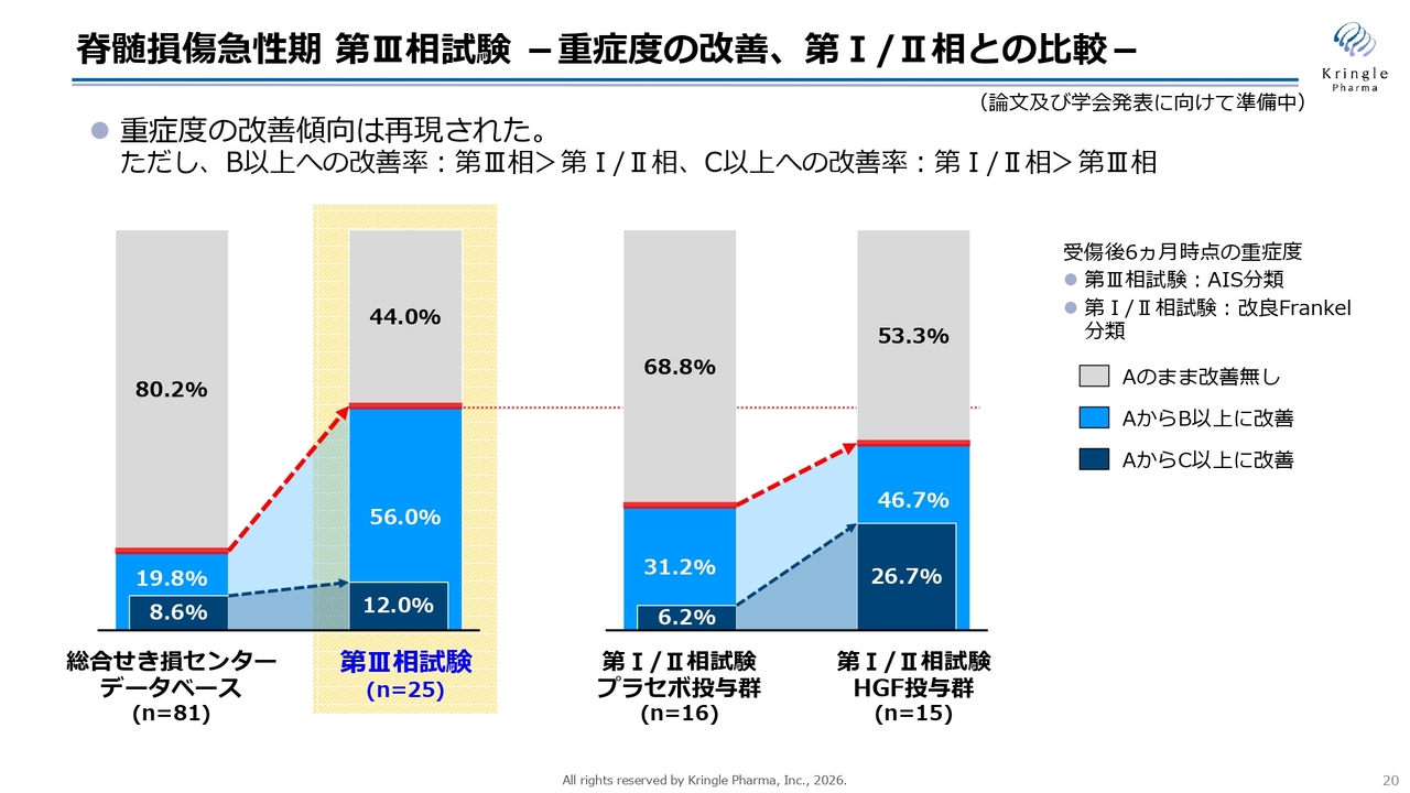 脊髄損傷急性期 第Ⅲ相試験 -重症度の改善、第Ⅰ/Ⅱ相との比較-