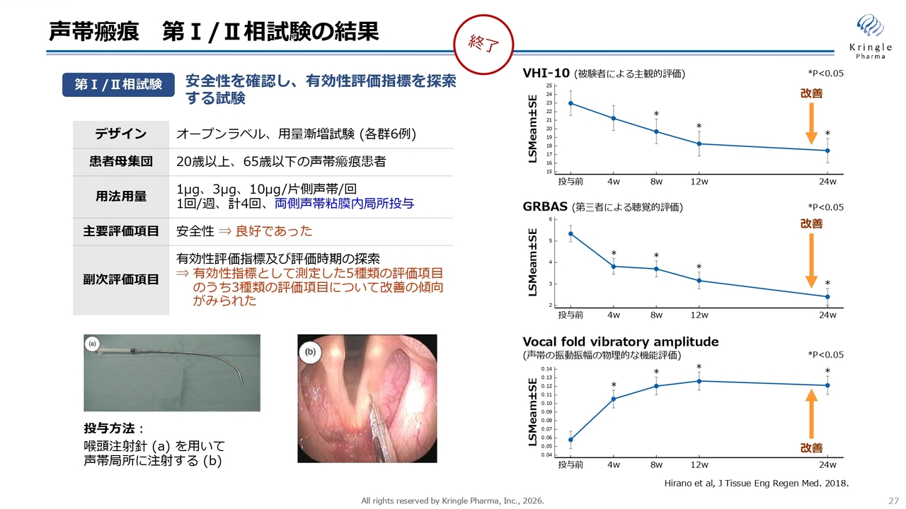声帯瘢痕 第Ⅰ/Ⅱ相試験の結果