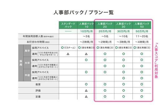 「人事スコア」は「人事部パック 20」以上のプランを導入頂くことでご利用いただけます。