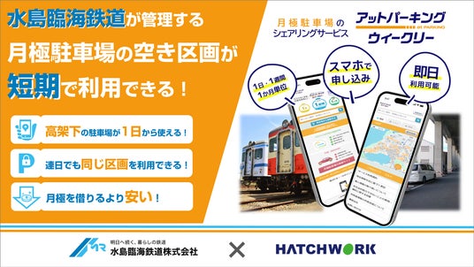 株式会社ハッチ・ワーク(本社:東京都港区、代表取締役社長:増田知平、以下ハッチ・ワーク)は、水島臨海鉄道株式会社(本社:岡山県倉敷市、代表取締役社長:伊東香織、以下水島臨海鉄道)が管理する月極駐車場の一部である7カ所を対象に、月極駐車場のシェアリングサービス「アットパーキングウィークリー」の提供を2025年5月1日から本格開始します。