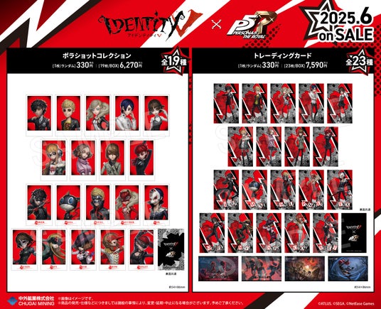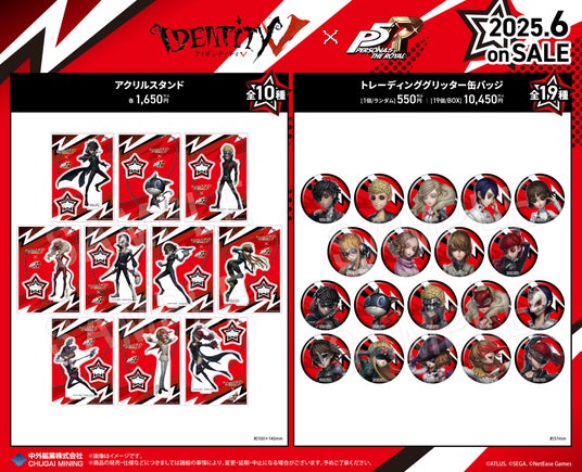 キャラクターグッズの商品企画・製作・販売を行う中外鉱業株式会社コンテンツ部は、「Identity V 第五人格」と「ペルソナ5 ザ・ロイヤル」のコラボグッズを販売します。