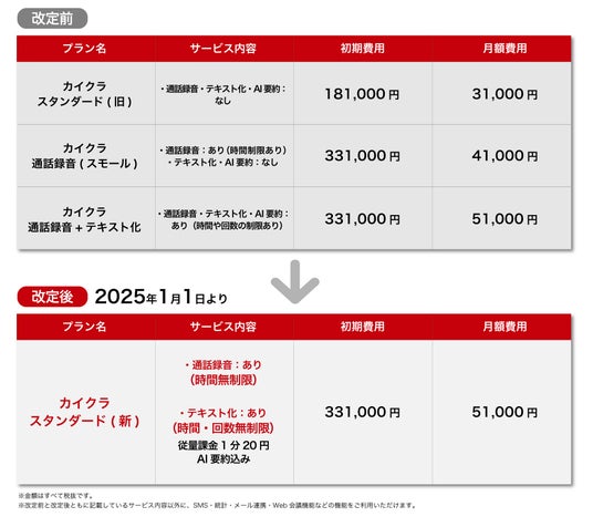 シンカは2014年8月のサービス開始以来、コミュニケーションプラットフォーム「カイクラ」の機能拡張を定期的に実施してまいりました。お客様ひとり一人の声を大切にし、2024年9月末現在で全国2,700社を超える幅広い業種の企業にご利用いただいております。このたび、円安の影響やインフラコストの増大等による事業環境の変化を受け、2025年1月1日以降に販売するプランについて利用価格の改定を行うことになりました。