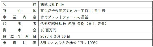SBIレオスひふみ株式会社(本社:東京都千代田区、代表取締役会長兼社長:藤野 英人、以下「当社」)は「株式会社Kiffy(キッフィー)」(本社:東京都千代田区、代表取締役社長:遠藤 美樹、以下「Kiffy」)を2025年3月10日に設立したことをお知らせいたします。