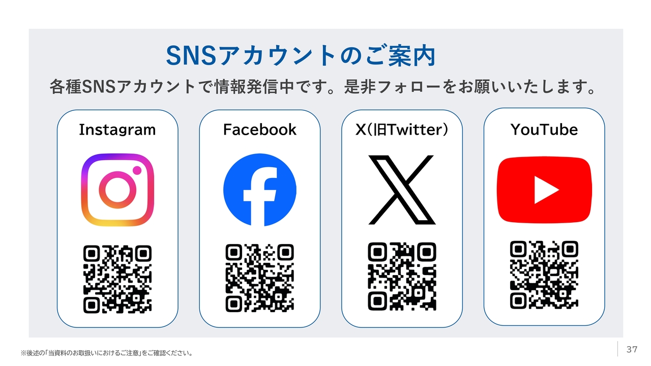 社員が行っている業務や採用情報をはじめ、決算や会社説明などについても積極的に発信して、これからどんどん伸ばしていきます。また初めての試みとして、インスタライブも行ってみたいと思っています。ぜひ、スライドに記載のアカウントをフォローいただければと思います。