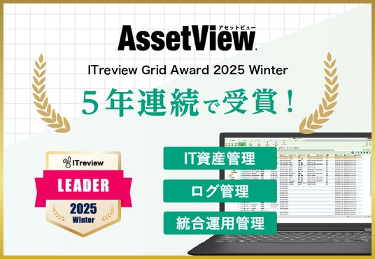 株式会社ハンモック(本社:東京都新宿区、代表取締役社長:若山 大典、証券コード:173A、以下「ハンモック」)が提供する、統合型IT運用管理「AssetView」は、アイティクラウド株式会社が主催する「ITreview Grid Award 2025 Winter」の「IT資産管理ツール部門」「ログ管理システム部門」「統合運用管理ツール部門」において、「Leader」を受賞しました。